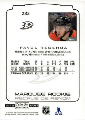 2022-23 Upper Deck O-Pee-Chee Platinum Hockey - Base - Marquee Rookie #283 Pavol Regenda - Anaheim Ducks
