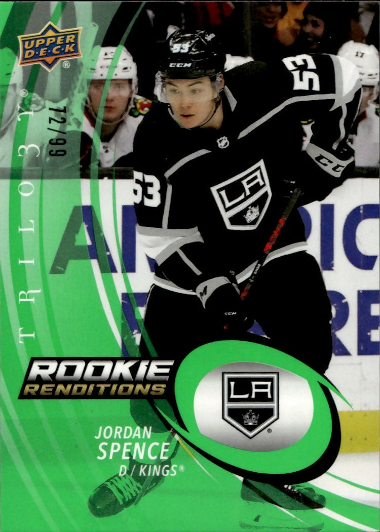 2022-23 Upper Deck Trilogy Hockey Rookie Premiers Level 1 /299 #213 Jordan Spence - Los Angeles Kings