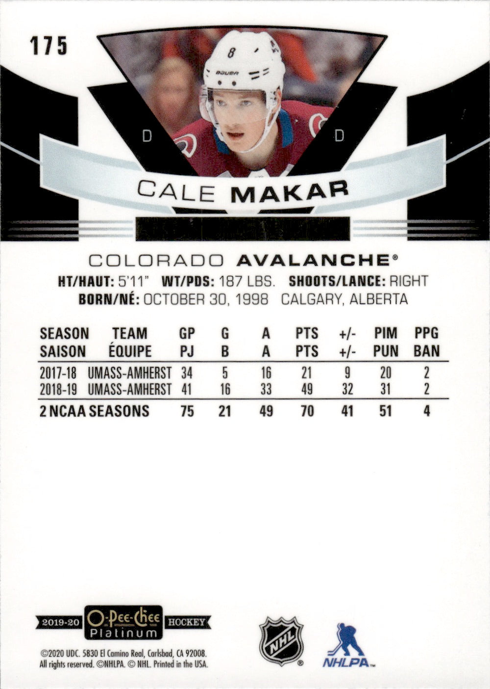 2019-20 Upper Deck O-Pee-Chee Platinum Hockey - Base - Marquee Rookies #175 Cale Makar - Colorado Avalanche