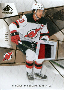 2021-22 Upper Deck SP Game Used Hockey - Base - Gold Premium Memrabilia /15 81 Nico Hischier - New Jersey Devils