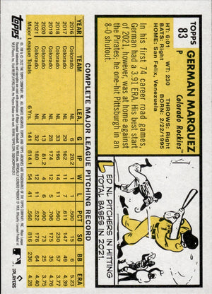 2022 Topps Archives Baseball 1963 Topps Design #83 German Marquez - Colorado Rockies